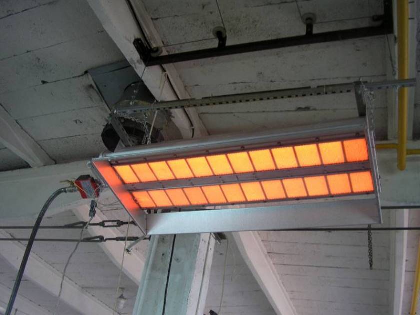 Подразумевается газовый обогреватель каталитического метода работы, но с керамическими тепловыми панелями, которые работают по принципу Солнца. Такой обогреватель нагревает предметы, попадающие под зону действия излучения, и даже людей, но не воздух. ИК газовый обогреватель очень редко используется для основного отопления, так как его действие строго зонировано. Целесообразно использовать газовый ИК обогреватель в помещениях не больше 20м2.