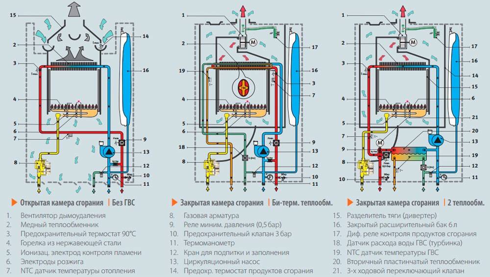 Также газовые двухконтурные котлы для дома различаются по типу теплообменников: