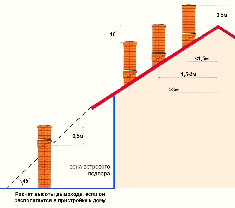Кстати, согласно пожарным правилам, длина дымохода выше конька крыши позволяет разместить выход на любом расстоянии от него. Тогда как, более низкая труба должна располагаться от края крыши и конька на определённой расстоянии. Эти причины должны быть предусмотрены ещё при кладке печи, в процессе эксплуатации их не исправить.