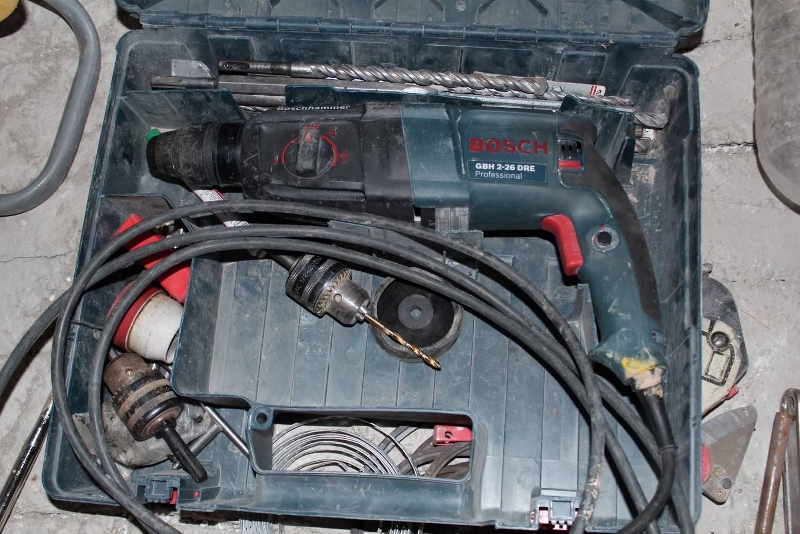 Пришло время поговорить о перфораторе. Я использую перфоратор Bosch вторая модель, мощность 800 Вт. К нему взял набор буров размером: 6,8,10,12,14 мм. Есть острая пика и плоская. Так же есть набор сверл по металлу и обязательно контейнер с литолом для смазки хвостовика бура при вставлении в патрон перфоратора. Я часто вижу абсолютно сухие патроны перфораторов. Это ужас, потому что основной износ идет именно при работе в режиме сверления с перфорацией.