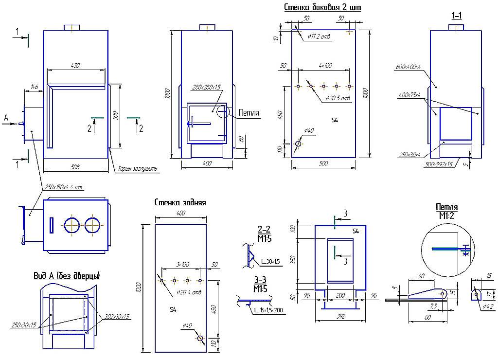 Чертежи печи с каменкой, пригодной для доработки на солярку