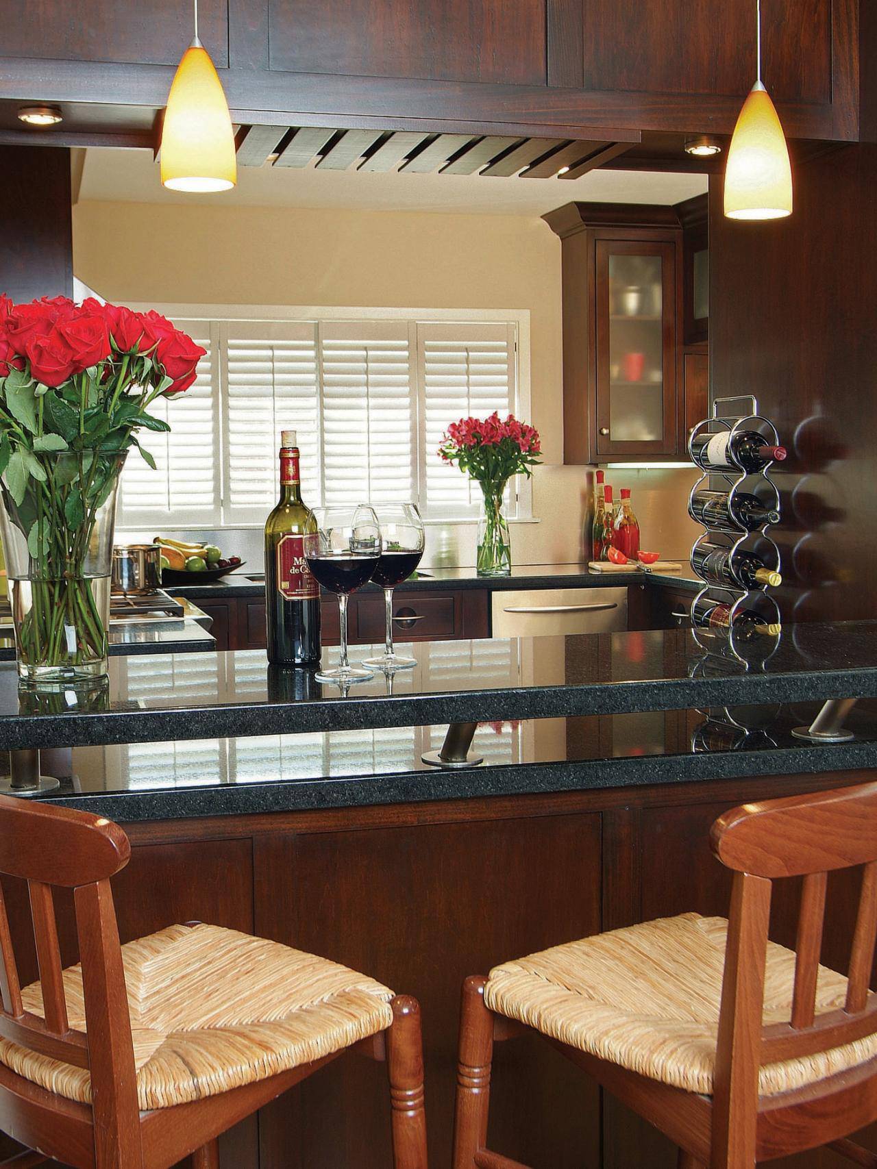 В кухне имеется два вида столешниц: рабочая поверхность и обеденная поверхность (кухонный стол или барная стойка). В больших кухнях может быть три: рабочая поверхность, обеденный стол и барная стойка.