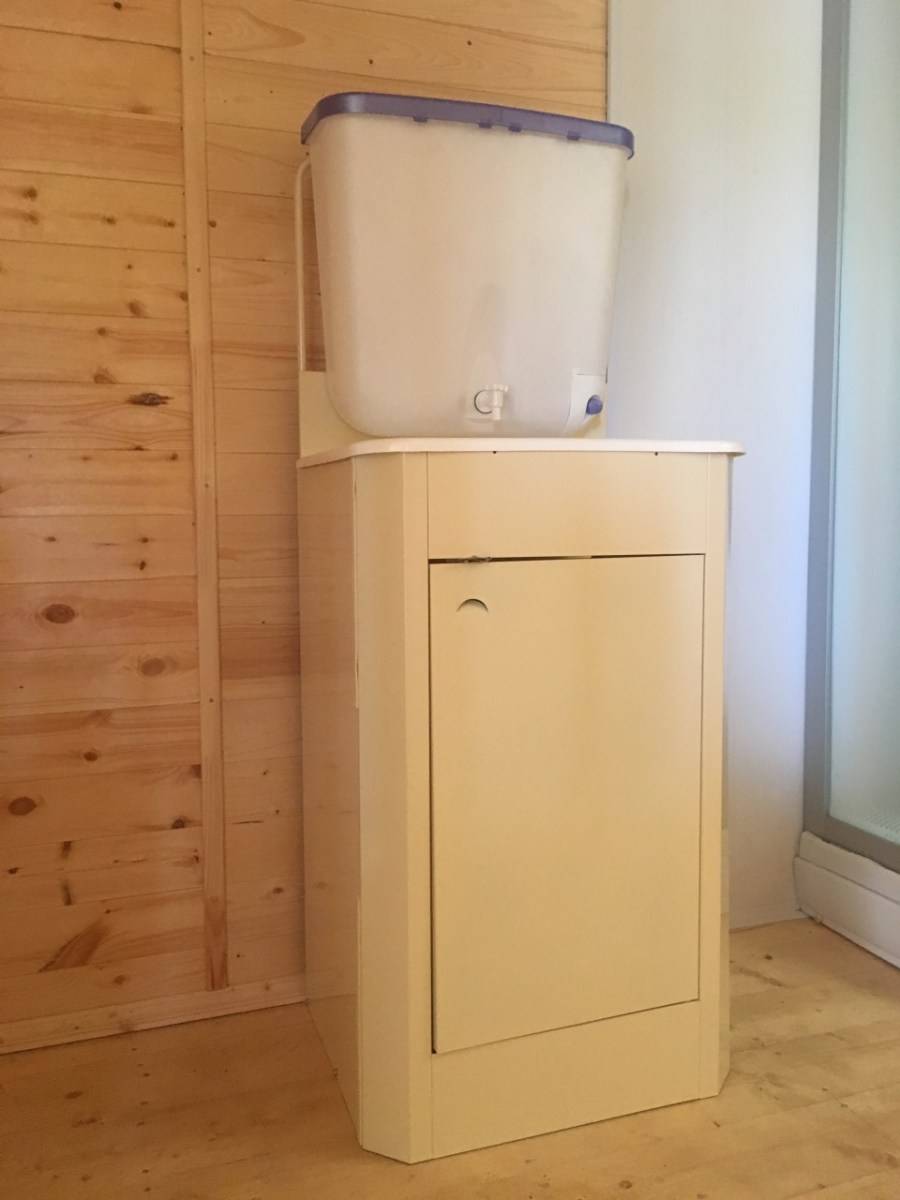 Внутри тумбы для слива воды устанавливают ведро. Конечно, в этом случае, придется внимательно следить за его наполнением. Если пренебречь этой рекомендацией, очередная порция слитой воды может спровоцировать небольшой потоп.