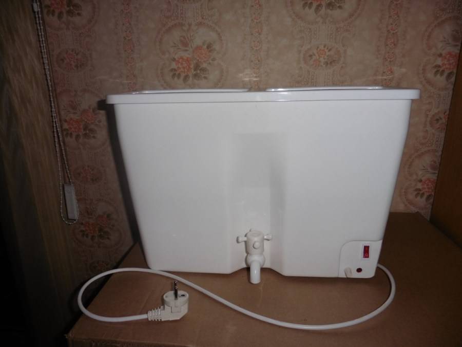В продаже имеется много разновидностей такого устройства, отличающихся не только внешне, но и по особенностям самой конструкции. Встречаются, к примеру, навесные модели, представляющие собой прямоугольную емкость с краном и нагревательным элементом внутри. Такие умывальники имеют антикоррозийное покрытие, монтируются на любую надежную поверхность.