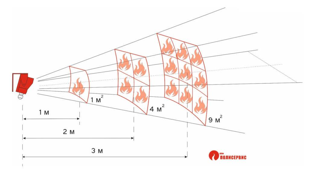 Количество энергии, полученной извещателем от пожара, уменьшается пропорционально квадрату расстояния между ними. Чтобы извещатель пламени получил такое же количество энергии, как от пожара с расстояния девяти метров, на расстоянии в один метр площадь пожара должна быть меньше в 9 раз.