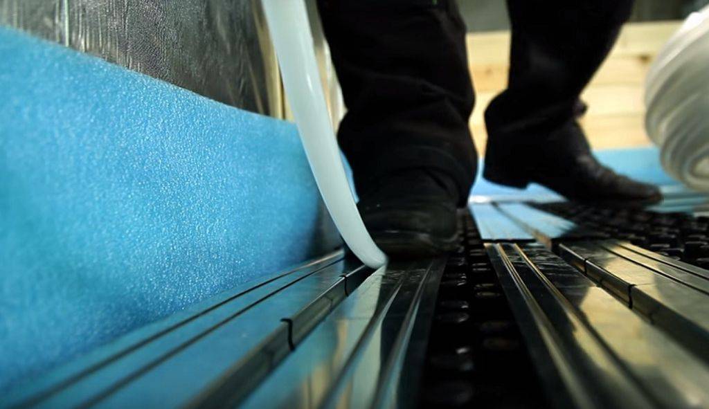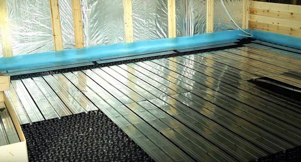 Основание, на котором будет происходить укладка теплораспределительных пластин или труб, необходимо тщательно гидроизолировать. Это поможет избежать утечки жидкости из системы или же ее попадания на электрический кабель.