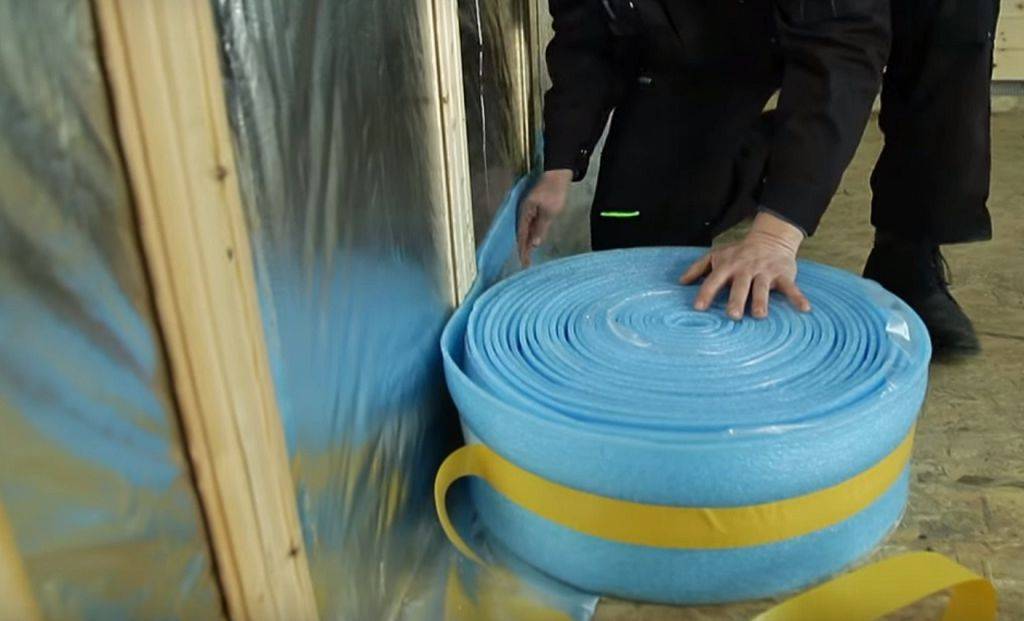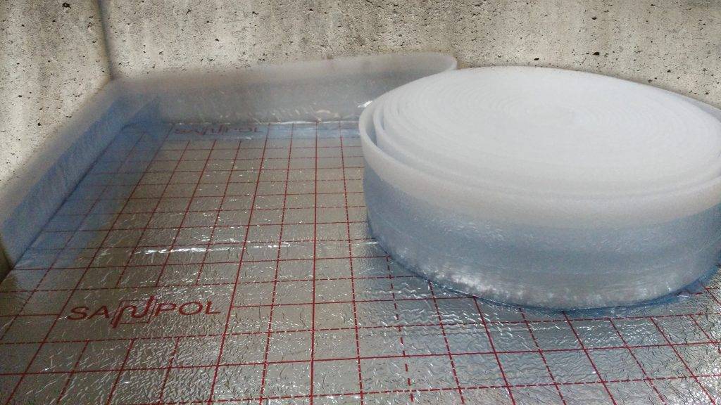 Решая, какие виды подложек под тёплый пол являются наилучшим выбором для электрических полов, чаще всего выбирают пенофол. Несмотря на то, что его основу составляет вспененный ППЭ (пенополиэтилен), присущий данному материалу недостаток удалось нейтрализовать ламинированием. Для чего применяется полимерная плёнка с прошивкой металлическими нитями. Она позволяет избежать утечки тепла и не позволяет ППЭ перегреваться до состояния деформирования.