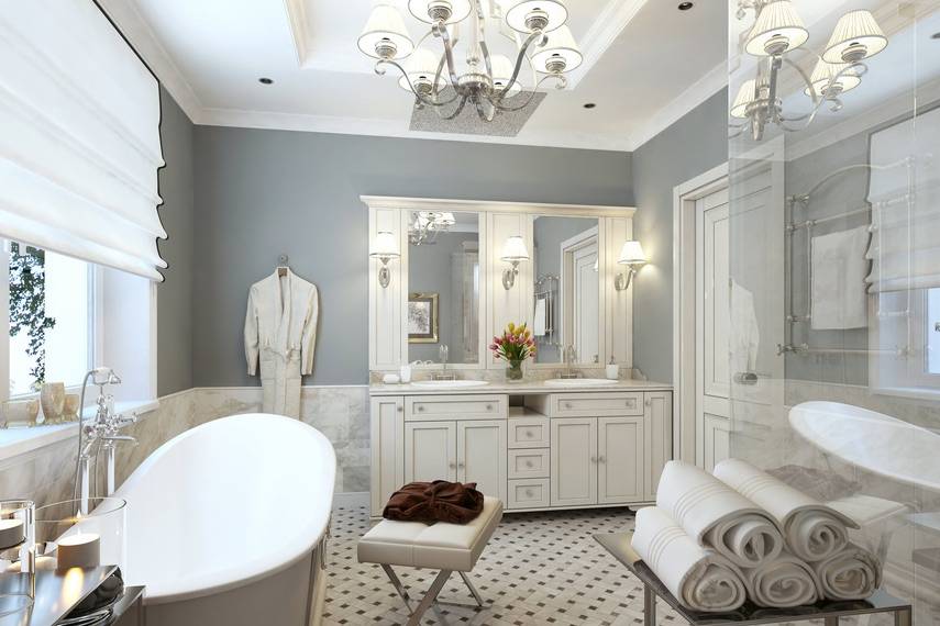 Классицизм в интерьере легко определить с первого взгляда, ее не спутать с чем-то иным, однако классический дизайн ванной не только узнаваем, но и бесконечно разнообразен.