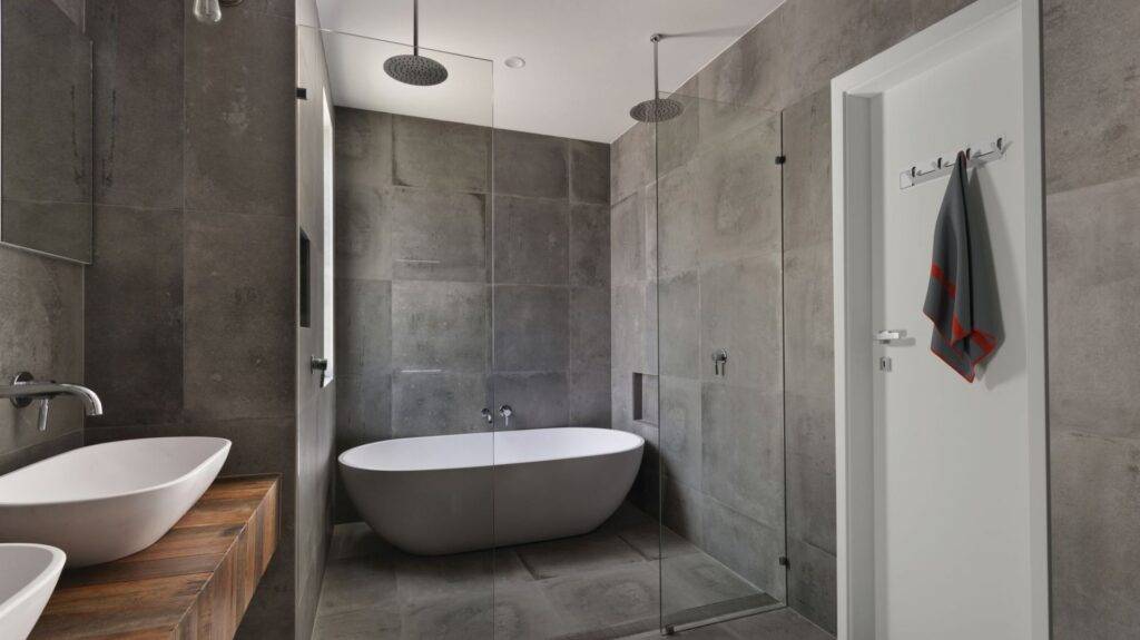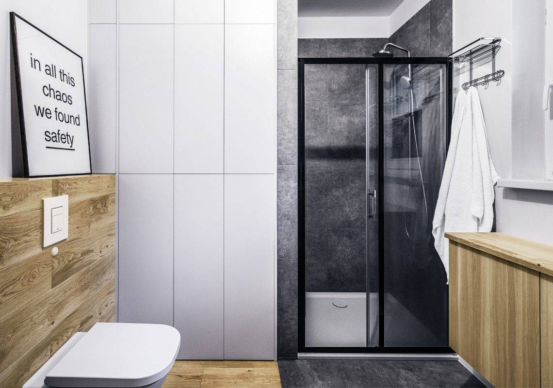 Важно предусмотреть, чтобы дверь открывалась наружу, а не внутрь ванной. Этот вариант не только удобнее, но и безопаснее: он исключает риск ударить человека, находящегося внутри