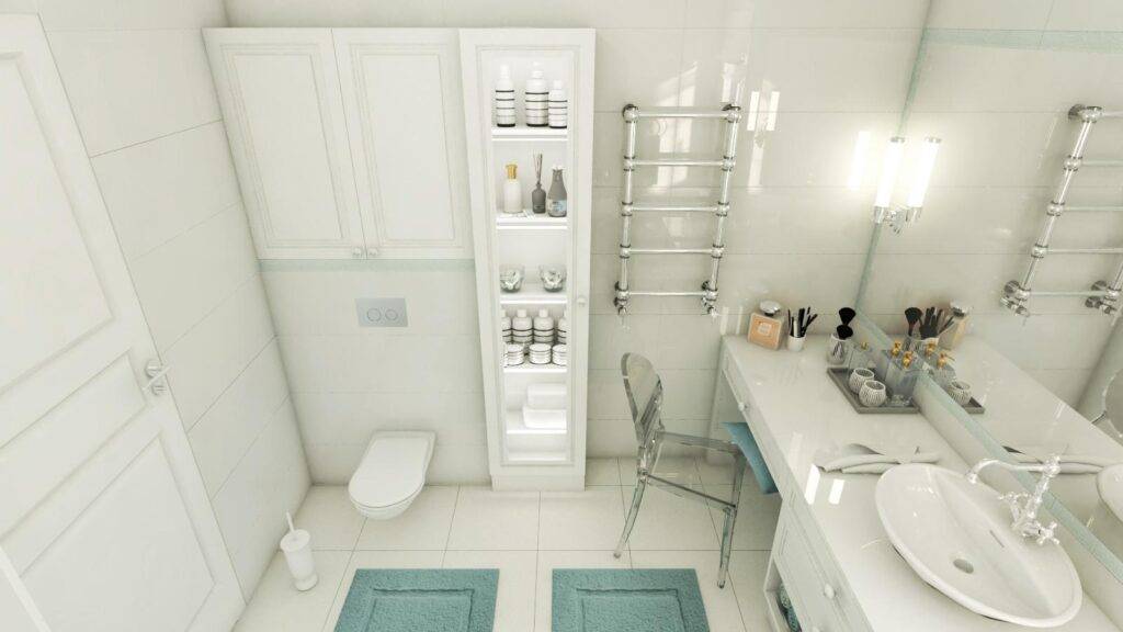 Дистанция от двери до соседней стены может определить интерьер ванной. От неё зависит, какой объект можно разместить в соответствующем углу.