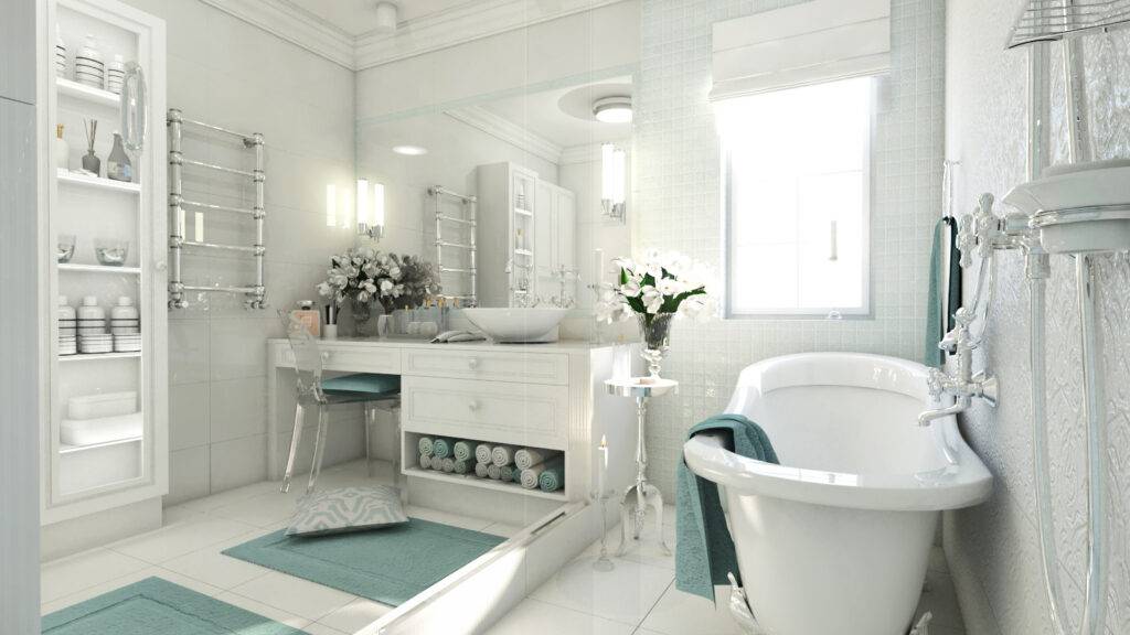 Дизайн ванной требует внимательного отношения к взаимному расположению предметов сантехники и мебели