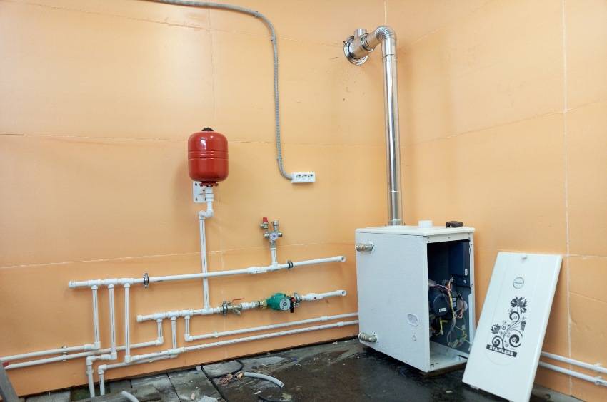 В гараже можно обустроить полноценную отопительную коммуникацию, имеющую газовый котел