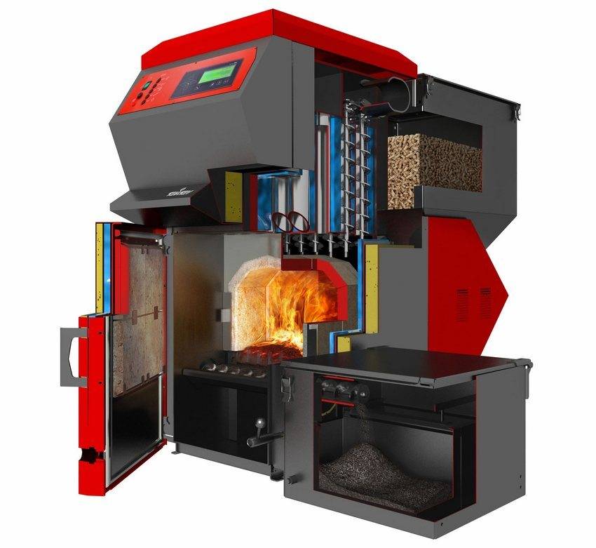 Мощность тепла, выделяемого при сгорании твердого топлива, составляет 25-35 кВт. Этой мощности вполне хватает для обогрева помещения в 100-120 м?, а ТЭН используется для поддержания стабильной температуры в доме. Комбинированные системы обогрева особо популярны в частном секторе, поскольку для нагрева помещения используется дешевое топливо. Благодаря встроенным ТЭНам, есть возможность варьировать режим отопления.