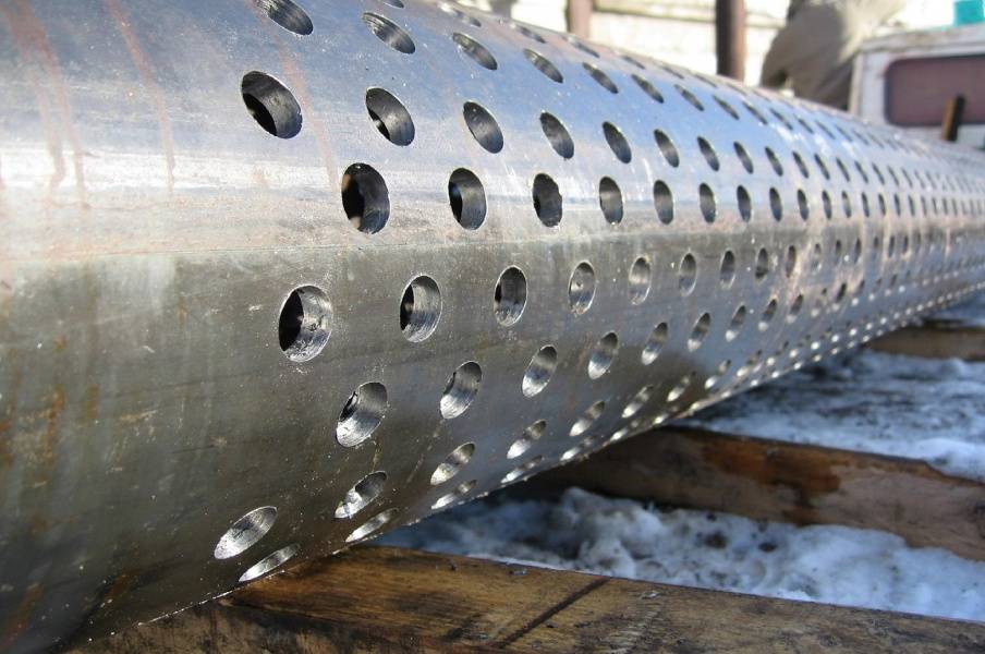 Наиболее доступным по стоимости сооружением для очистки воды считается дырчатый фильтр. Он делается в виде стальной трубы с перфорацией. Такие приспособления рекомендованы для монтажа в скважины на песок и на другие породы. Дырчатые конструкции неплохо показывают себя при эксплуатации на водоносных горизонтах с нестабильными характеристиками.