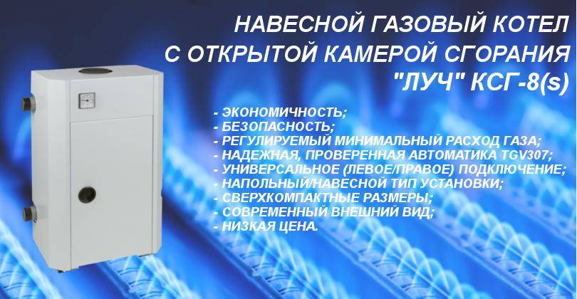 Отличительная особенность — открытая топка. Отработанные продукты горения отводятся традиционным способом, через дымоходы. Поэтому их использование возможно только там, где есть специальный вертикальный дымоход. Линейка представлена модификациями КСГ/КСГВ, которые отличаются автоматикой: