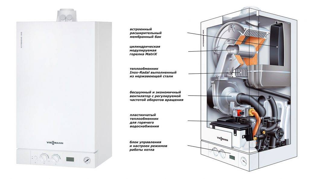 Отличия и особенности двухконтурных котлов рассмотрим на примере Viessmann Vitopend 100-W.