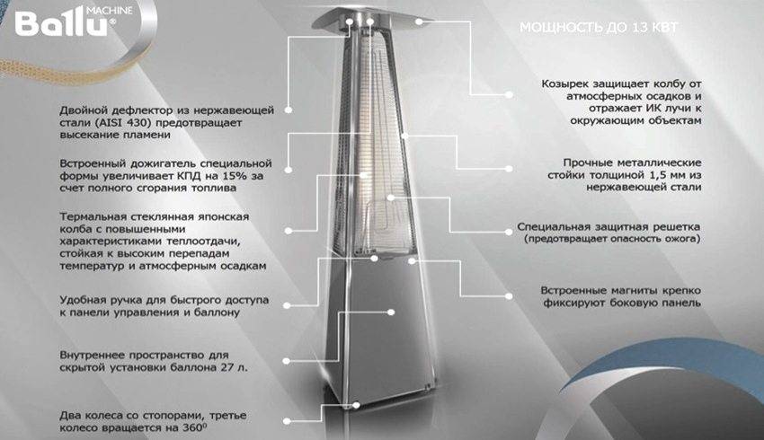 Конструктивные особенности уличного обогревателя Ballu
