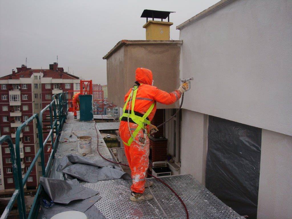 - Также оно может использоваться в качестве защитного слоя для конструкций, располагающихся под открытым небом, и внешних поверхностей стен.