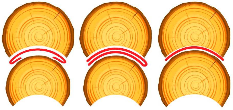 - Общие рекомендации — ширина продольного паза должна быть не менее половины диаметра бревна.