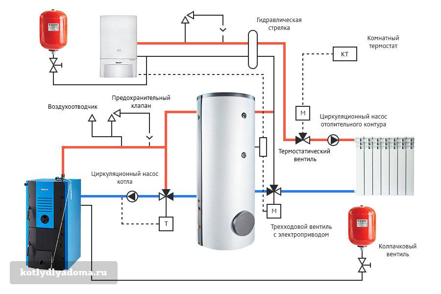Схема обвязки твердотопливного котла с тепловым аккумулятором