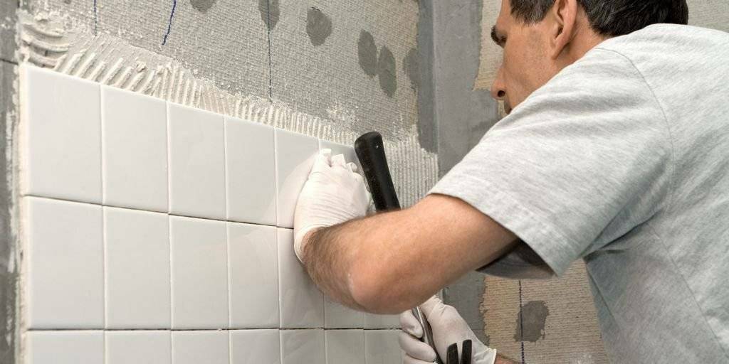 - Сверху гипсокартонных листов необходимо уложить плитку из керамики.