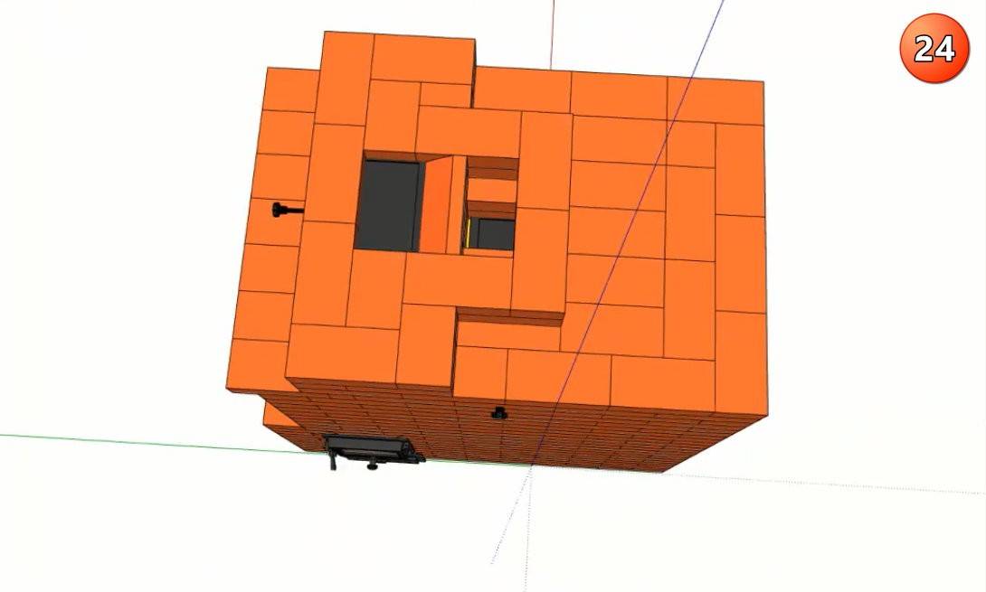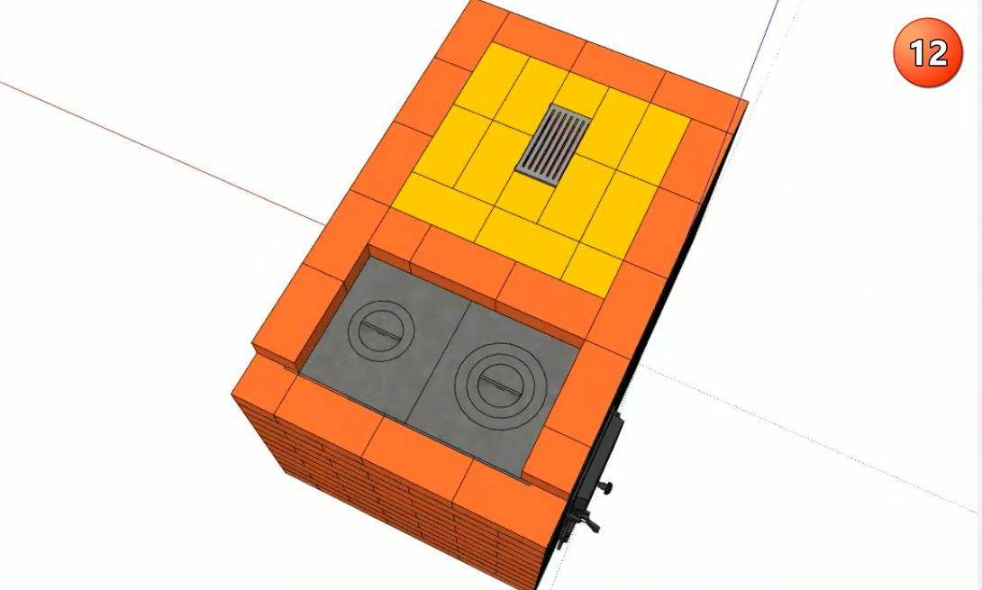 Ряд №12 выкладывают «под». Его делают из специального кирпича;