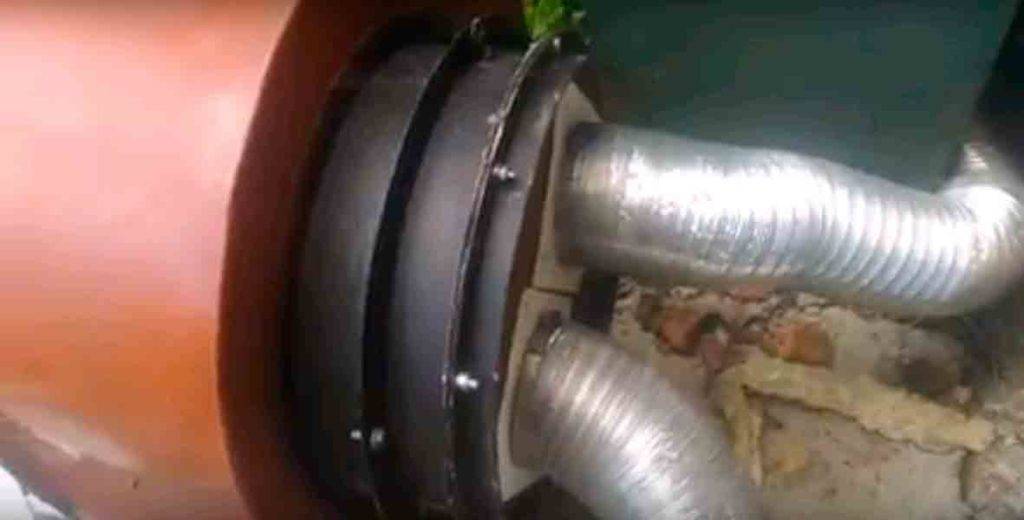 Теперь все отверстия закрываются сетками, верхний конец на крыше дополняется грибком. Для сбора конденсата под выходным патрубком ставится емкость.