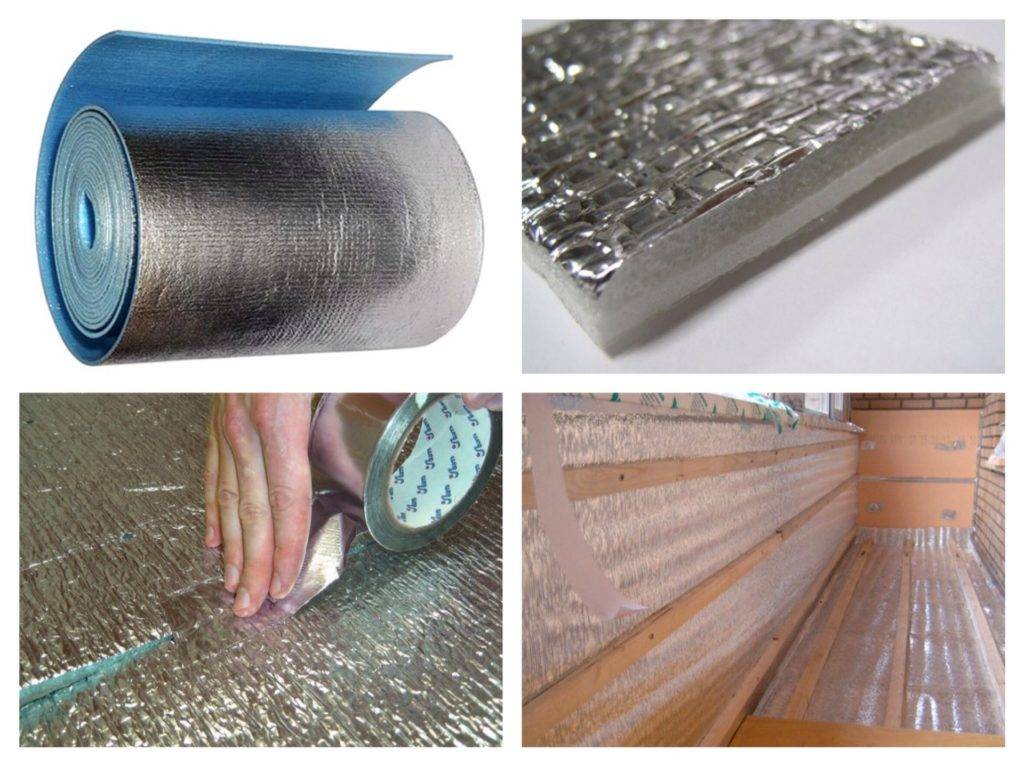 Вспененный полиэтилен укладывается не только в стык, но и внахлёст, что позволяет вести работу с ним любому мастеру. Обязательным условием достижения максимальных показателей является проклейка мест соединения фольгированным скотчем. Таким образом достигается монолитная отражающая поверхность, легко создаваемая своими руками любого домашнего мастера. Помимо этого, данный утеплитель будет необходим при создании «тёплого» пола, где применяется водяной шланг или электрический кабель.