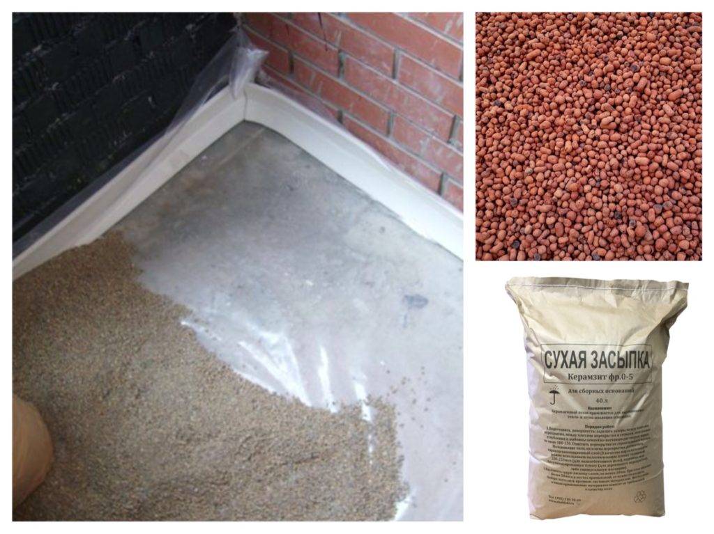 При необходимости значительно поднять уровень пола на балконе с одновременным утеплением, выравнивание можно провести керамзитом. Строители такой способ называют сухой стяжкой. Ее сильные стороны: