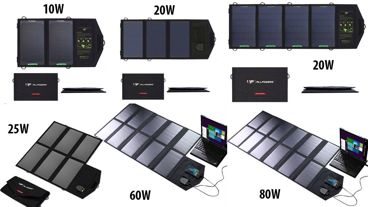 Если вам нужно подзарядить аккумулятор авто, мини-холодильник, ноутбук или аккумулятор емкостью 12 вольт, следует обратить внимание на: Allpowers 21 WattDC, Allpowers 40 Watt или Allpowers 60 Watt. Также учитывайте длительность похода: