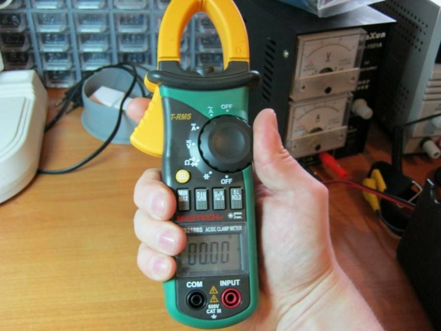 Мультиметром. Провести проверку силы тока и измерить напряжение, так же как и токоизмерительными клещами, сделать необходимые расчёты. Точность показаний у этого прибора несколько ниже, но и стоимость меньше.