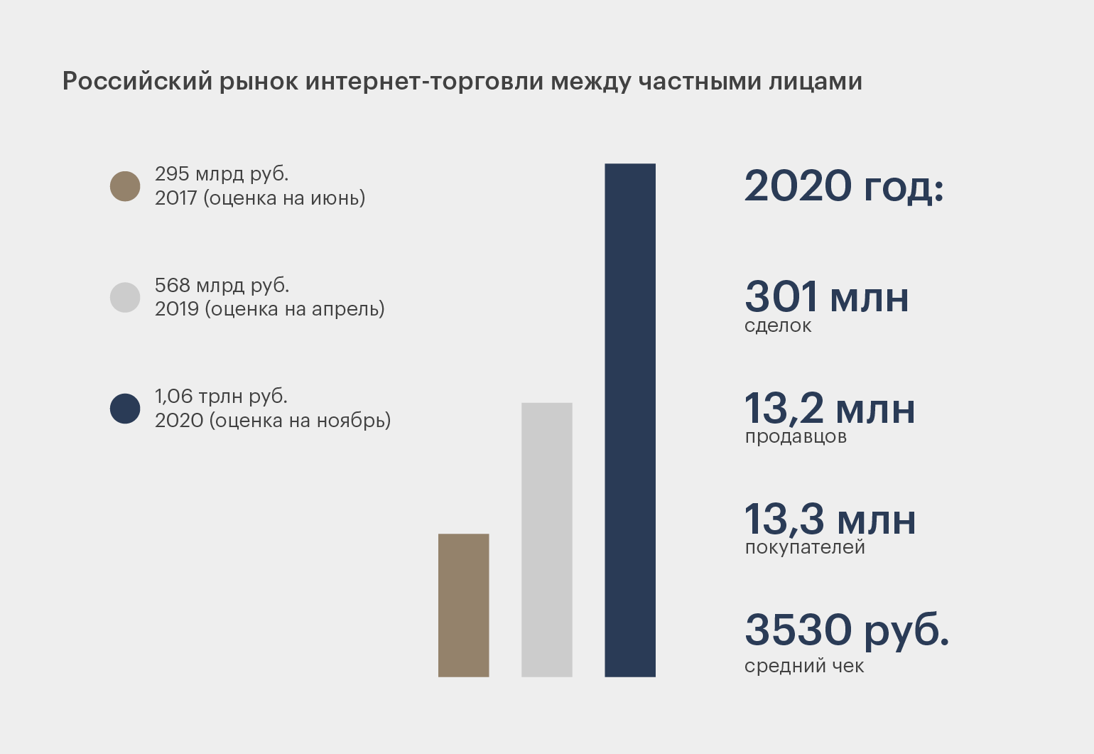 Тенденция заметна уже сейчас: как показало исследование Data Insight, по сравнению с 2020-м к середине 2021 года объём рынка продаж между частными лицами в России увеличился на 87% и превысил 1 трлн руб. Это подтверждают и данные McKinsey: оборот крупнейших в Европе С2С-площадок вырос на 12–58% с 2020 года.