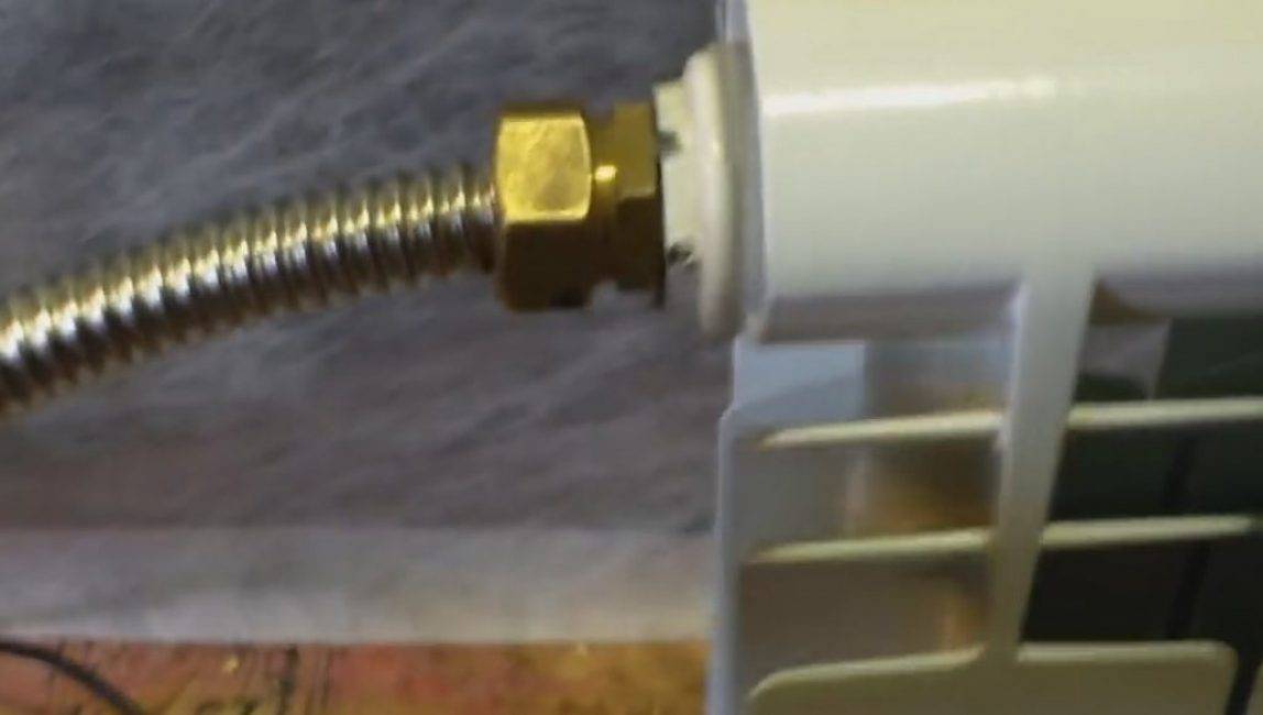 Теперь заливаем в систему теплоноситель. Откручиваем верхнюю гайку радиатора и наполняем его водой. Немного оставляем пустого пространства, которое нужно для расширения воды.