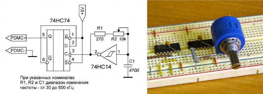 Обратите внимание на то, что схема создания частотного генератора предусматривает наличие сразу двух силовых транзисторов.