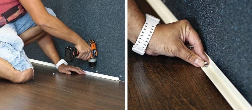 Главное, что понадобиться вам в процессе работы – перфоратор и умение им пользоваться. Приобретая плинтуса, в комплекте вы получаете саморезы и кронштейны, на которые и будете производить крепление.
