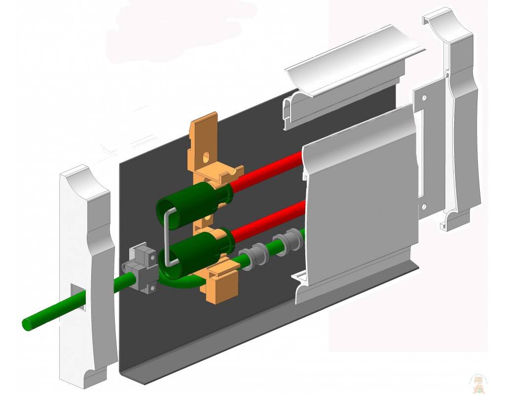 Конструкция электрического плинтуса проста, состоит она из нагревательных кабелей, которые нужно будет подключить к электросети и лицевой панели, с помощью нее мы крепим и закрываем греющие элементы.
