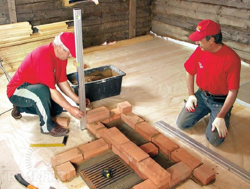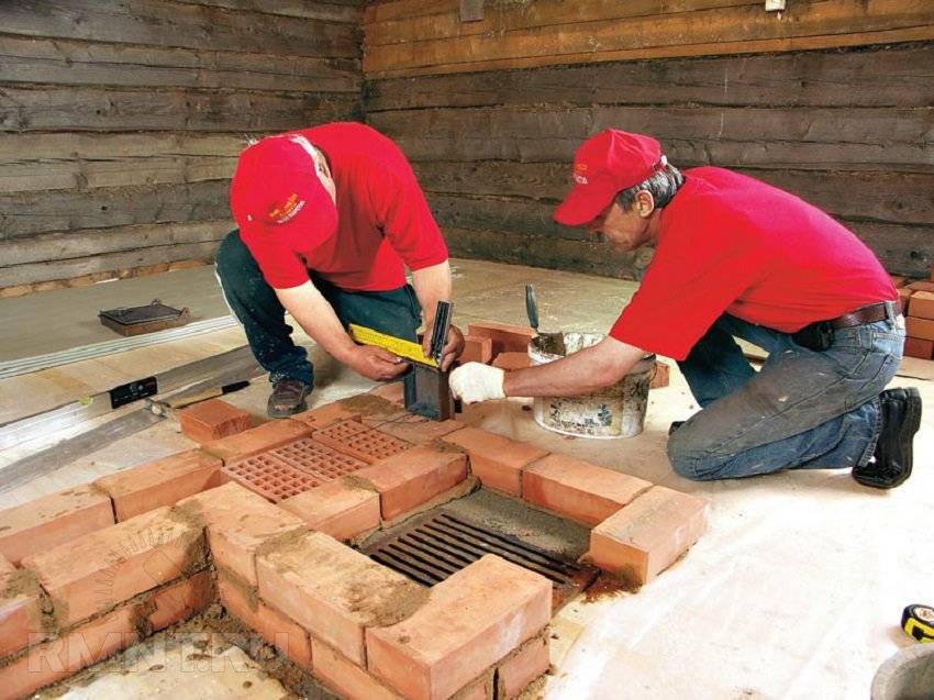 Как правило, печь складывают одновременно с возведением стен и крыши. Для этого фундамент готовят заранее, ведь печь весит около 3 тонн. Такую нагрузку на 1 м2 выдержит только добротно залитый, устоявшийся фундамент