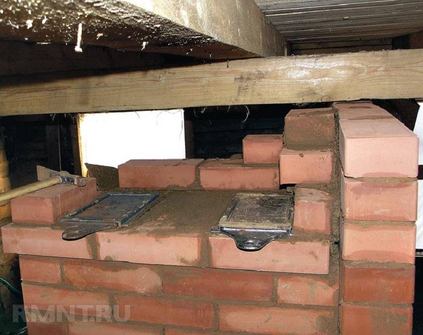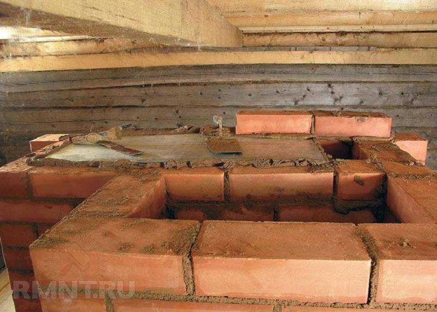 Отверстия в чердачных или межэтажных перекрытиях делаются непосредственно перед кладкой печи.