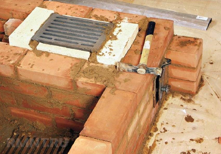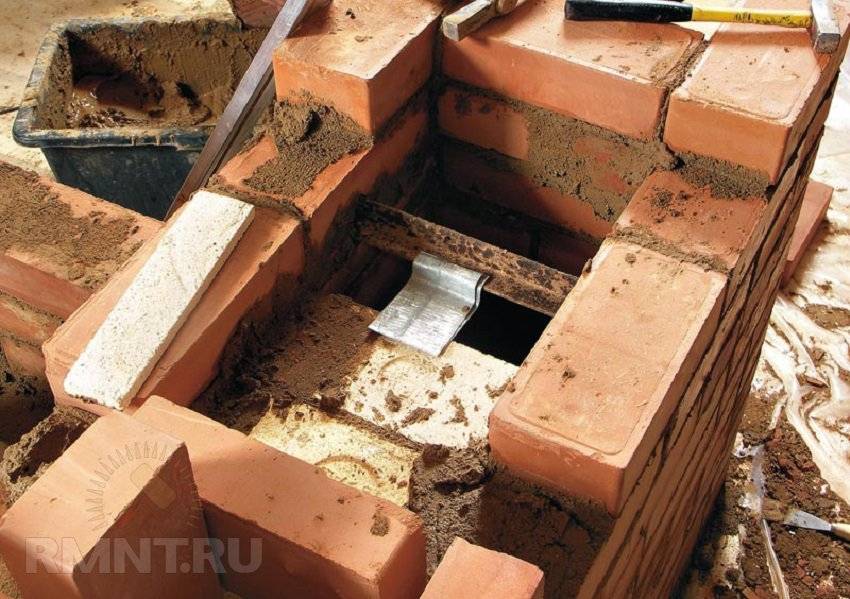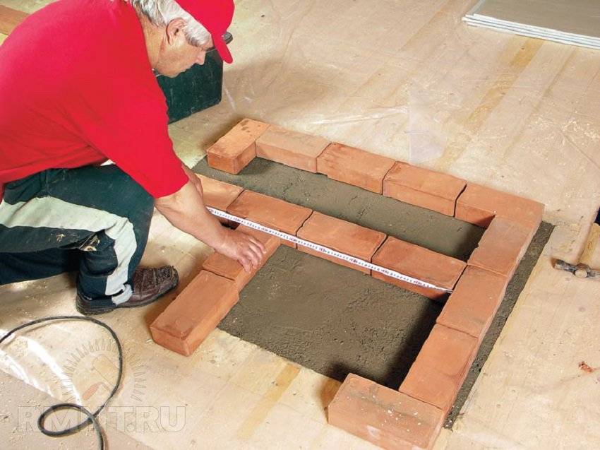 - Кладка первого ряда кирпича осуществляется без раствора.