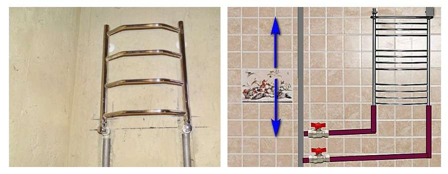Монтаж полотенцесушителя на другую стену
