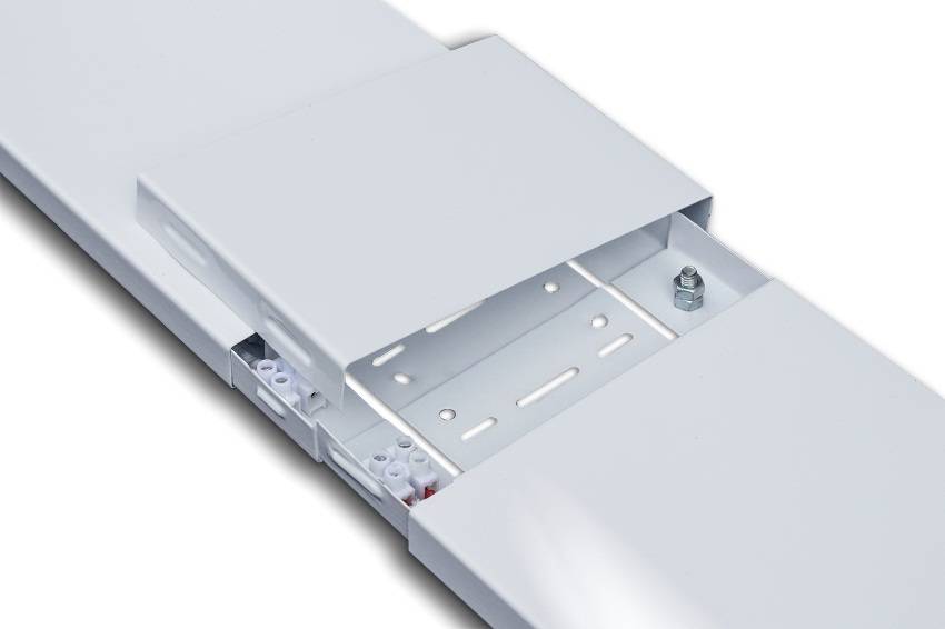 - Внутри короба заключены нагревательные элементы, которые крепятся к стене с помощью монтажных кронштейнов.