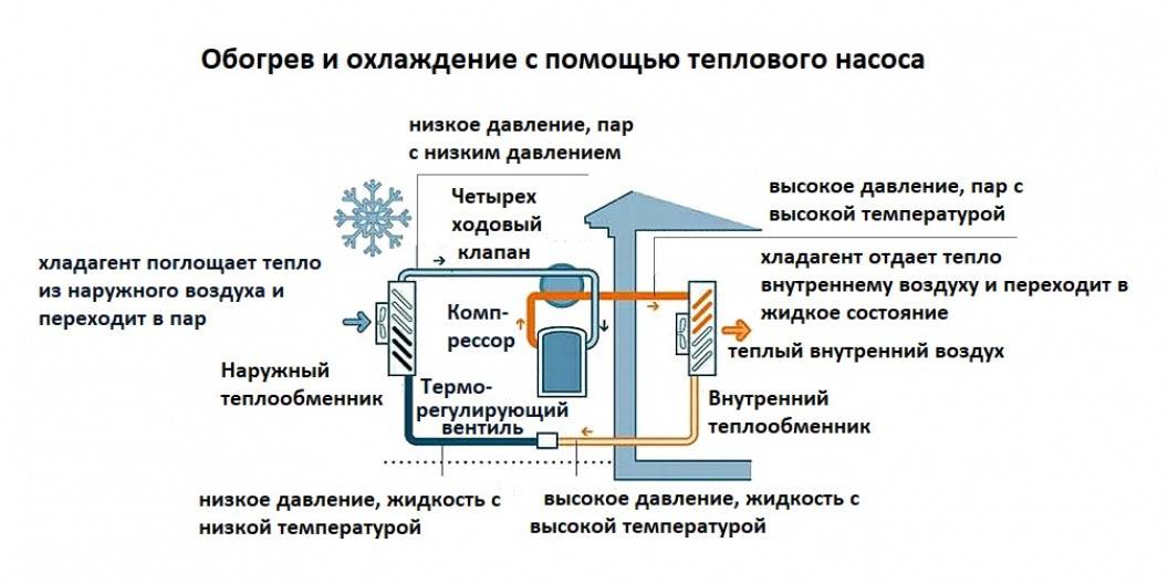 Рабочий процесс в тепловом насосе воздух-воздух складывается из 4-х последовательных циклов: