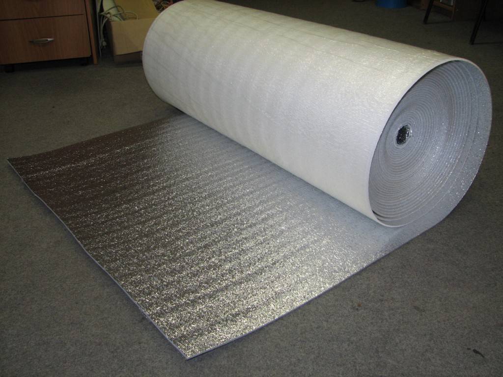 Продается он в виде рулонов шириной 100-120 см, а толщина может достигать 2 см. Он практически полностью отражает тепло, не давая ему выходить наружу. Главная особенность — совершенно не «боится» влаги, поэтому его нередко используют при создании влагоизоляционного слоя. Для домов, расположенных в районах крайнего севера можно порекомендовать комбинированное использование пеноплекса и фольгированного полиэтилена (настилается в качестве пароизоляционной пленки).