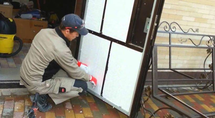 При установке теплоизолятора необходимо учитывать, чтобы его толщина соответствовала глубине пустот в двери. Даже самые маленькие оставшиеся щели и пустоты нужно заполнить монтажной пеной. После этого снятая внешняя обшивка двери монтируется на свое место.