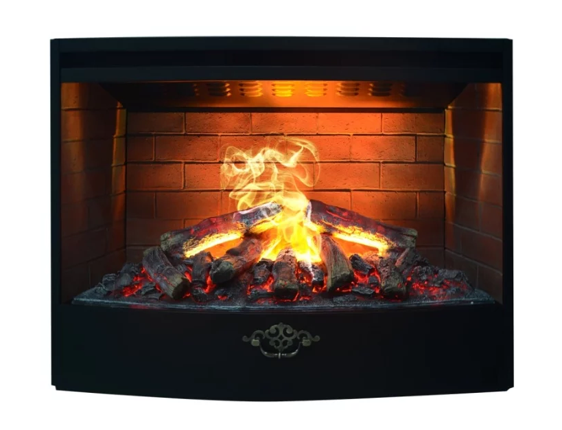 Парогенератор. В моделях с такой системой, пламя имитируется за счет сочетания пара, вырабатываемого ультразвуковым генератором, топки с дровами и подсветки. Такая топка наиболее реалистична и огонь выглядит, как настоящий. Помимо этого, во время работы вырабатывается пар, который дополнительно увлажняет воздух в квартире. Правда, придется регулярно доливать воду и чистить устройство от накипи и загрязнений. Также парогенераторные модели стоят довольно дорого. Вот один из относительно доступных электрокаминов с парогенератором – Real Flame Oregan 3D.