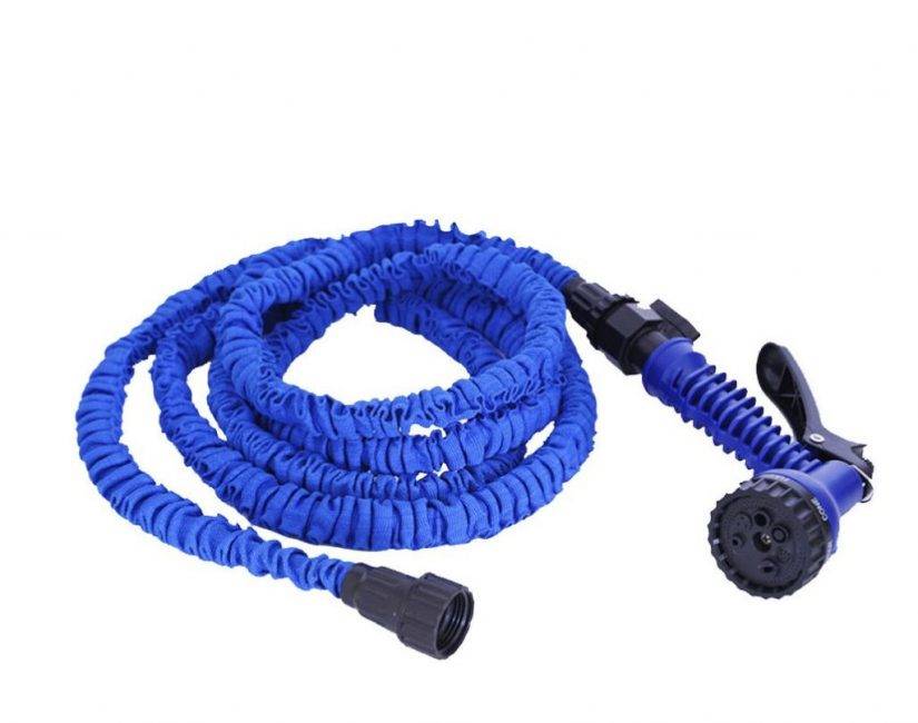 Номинальная длина данного шланга составляет 5 метров, так что при создании большого напора воды он растягивается в три раза. Радует наличие очень удобного пистолета, который хорошо сидит в руке и имеет гибкий регулятор режимов. Есть переходники, которые при необходимости позволяют изменить итоговый диаметр. Отмечается, что шланг достаточно прочный и его не так легко повредить, в отличие от многих конкурентов.