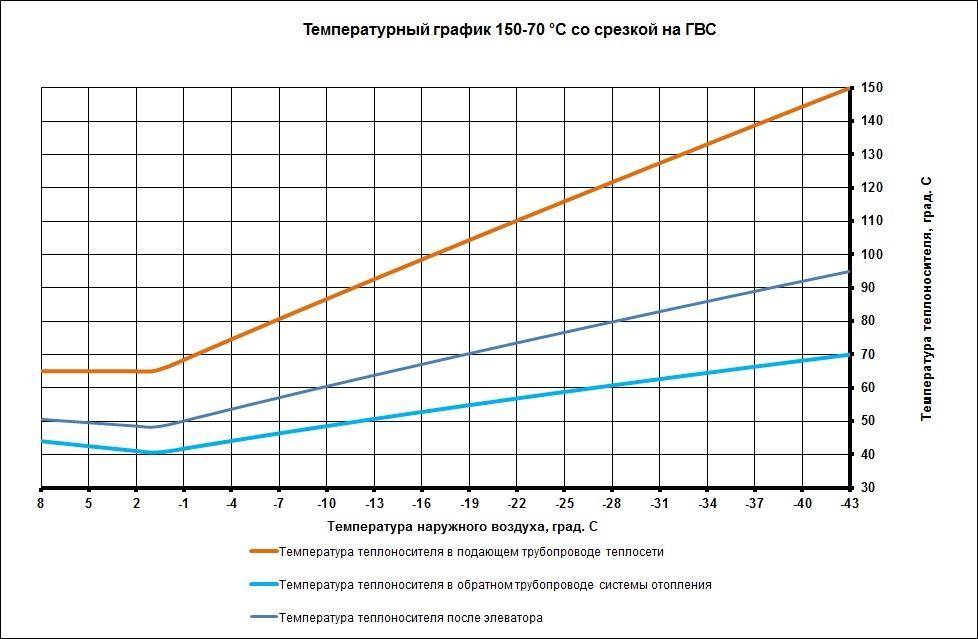 Согласно стандартам, нагрев теплоносителя зависит от наружной температуры и определяется по входящему в дом трубопроводу.