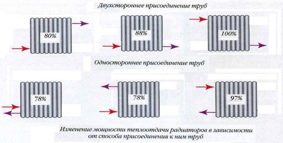 Есть более выгодные варианты, чем нижнее подключение, которые обеспечивают снижение теплопотерь: