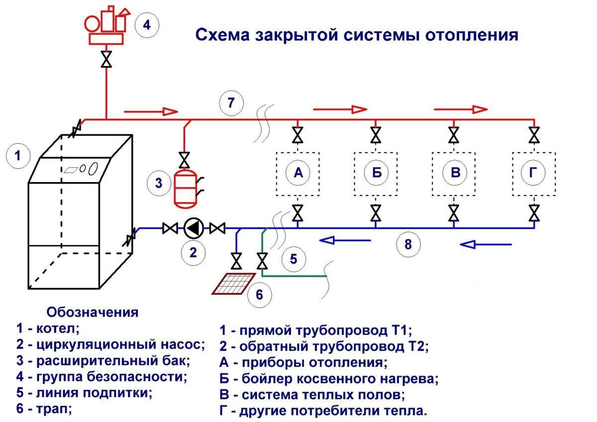 Закрытая система отопления является более современной и более сложной. Её применяют в многоэтажных домах и коттеджах.