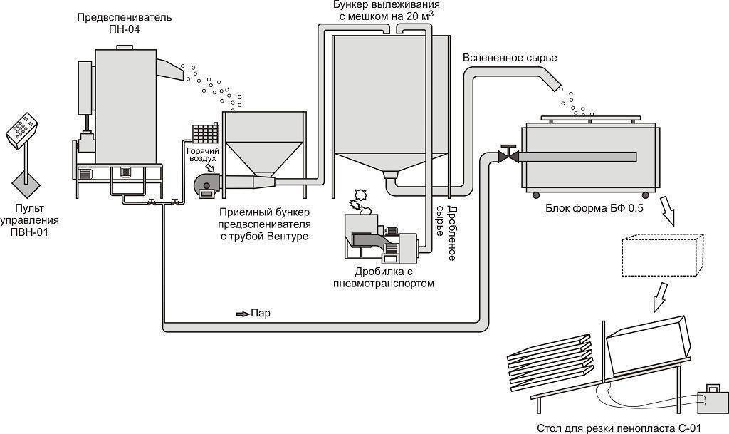 Важнейший показатель качества ППС – плотность. Она зависит от способа производства и особенностей пенопластовых гранул. Во время спекания происходит разбухание гранул пенополистирола, при прессовке они склеиваются друг с другом. Чем сильнее прессовка, тем плотнее прилегают гранулы друг к другу. От этого напрямую зависит степень теплопроводности и паропропускной способности продукта на выходе.